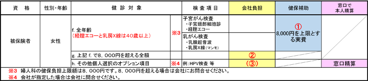 【被扶養配偶者(全員)、35歳以上の女性の被扶養者の方は、家族健診(巡回レディース健診)に含まれています。】