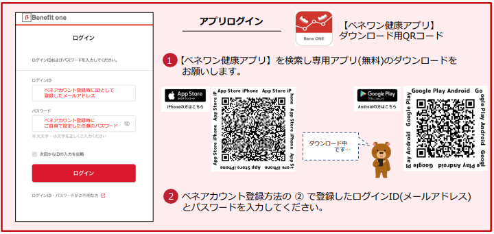 【 2 】:「ベネワン健康アプリ」をダウンロード(スマホからご利用の方)