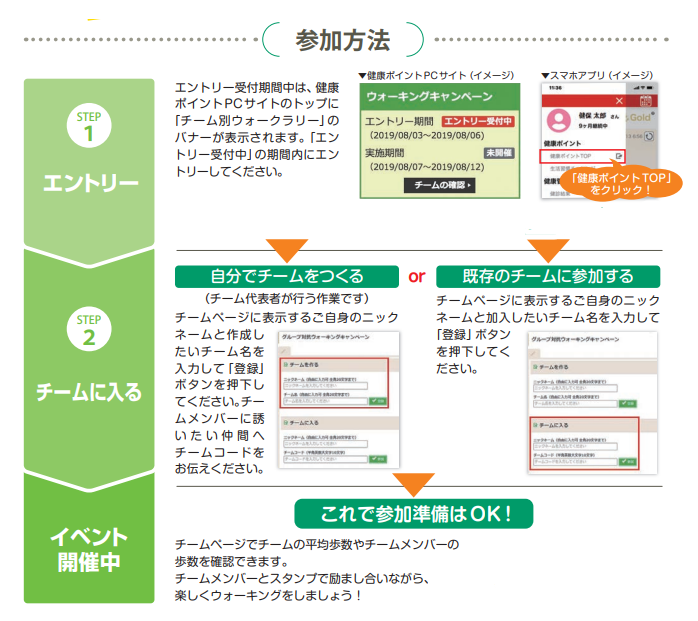 また、「チーム別ウォーキングイベント」や「生活習慣チャレンジキャンペーン」実施期間中は、更にお得にポイントを貯めることができます。